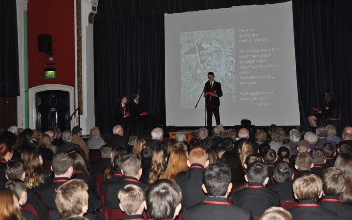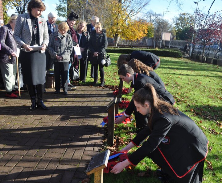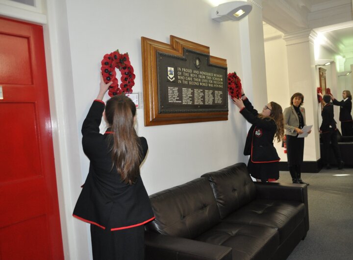 Governors, students and staff at the school gathered to reflect upon the horrors of conflict and think about the global suffering caused by war.